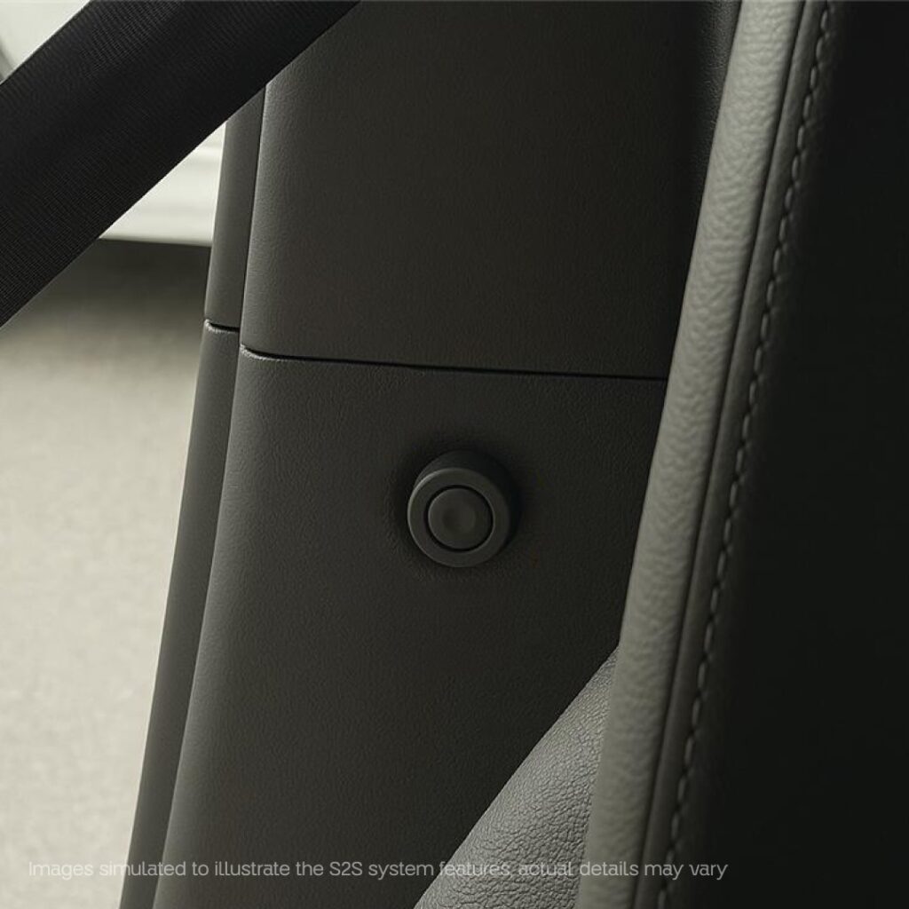 A key principle of the S2S system is shared protection. Drivers have immediate access to an emergency button beneath the steering wheel. Passengers can discreetly activate theirs near the rear seat’s B-pillar.